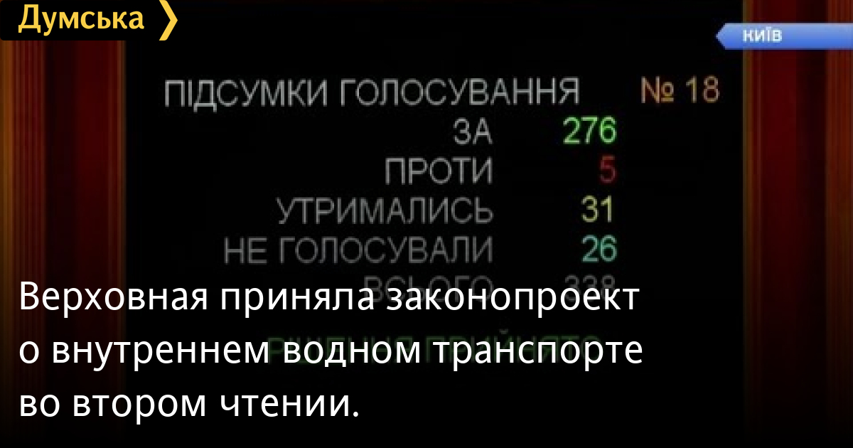 Верховная приняла законопроект о внутреннем водном транспорте во втором чтении.СМЕРТЬ РОССИЙСКИМ ОККУПАНТАМ! Заметили ошибку? Выделяйте слова с ошибкой и нажимайте control-enter Думская ТВ. Сюжеты: