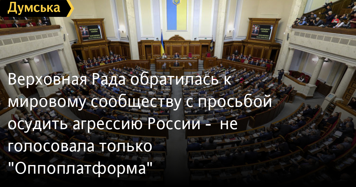 Народные депутаты Украины проголосовали за обращение к парламентам иностранных государств с просьбой осудить вооруженную агрессию РФ против Украины.