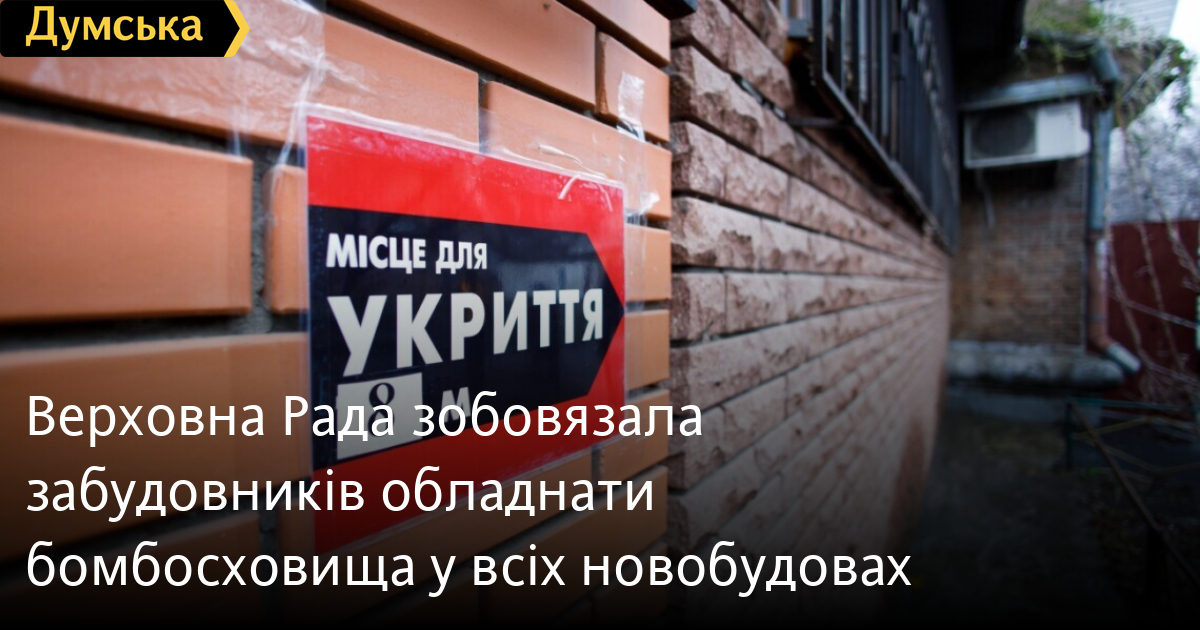Народні депутати України підтримали законопроєкт, який зобов'язує забудовників обладнати бомбосховища у всіх будинках і будівлях, що будуються.