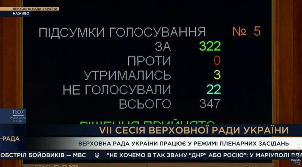«За» постановление проголосовали 322 нардепа, против не было ни одного голоса, но трое депутатов воздержались, а 22 – не голосовали.