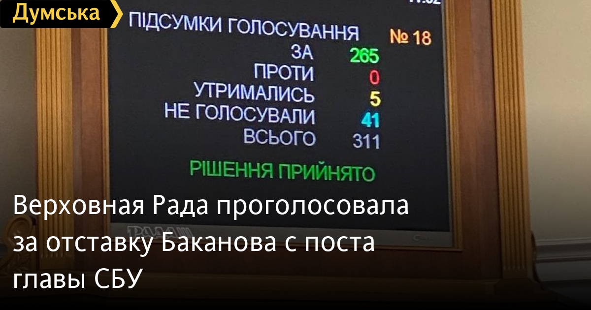 Сам Баканов був відсутній на пленарному засіданні.
