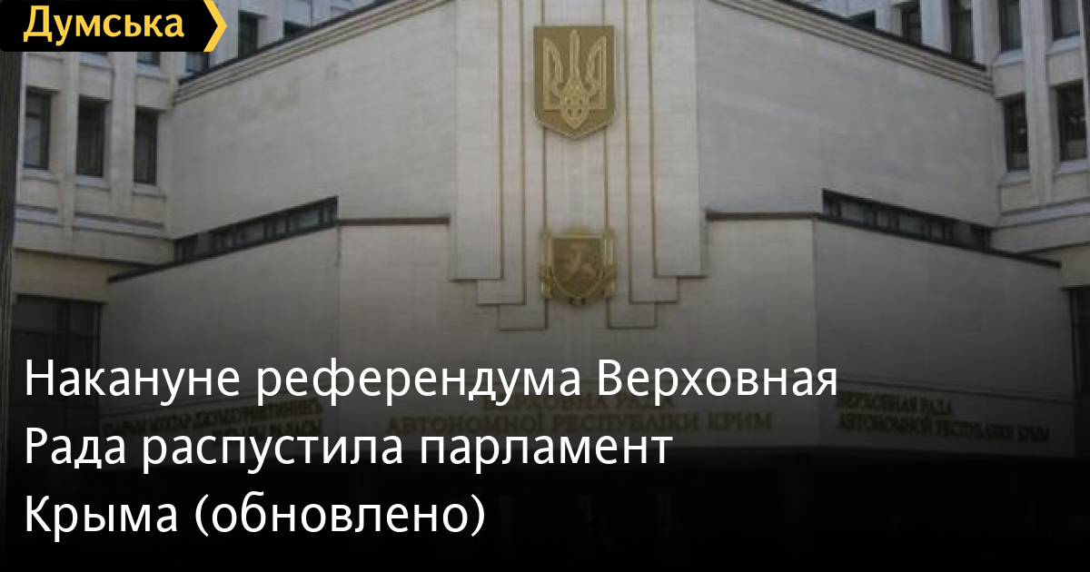 Крымский парламент распущен за нарушение Конституции Украины. За постановление о досрочном прекращении полномочий Верховной Рады АРК №4461 проголосовали 278 народных депутатов, пишет «ЛІГАБізнесІнформ».