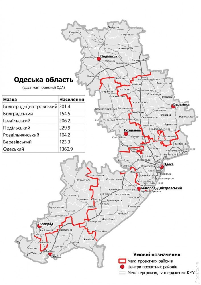 В проекте постановления Рады, который 12 июня был утвержден Кабмином, напомним, фигурирует всего шесть районов. Комитет предлагает добавить к ним еще один — с центром в Березовке. Он должен охватывать нынешние Березовский, Ивановский и Ширяевский районы.