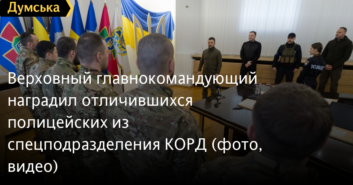 Президент Украины, верховный главнокомандующий Владимир Зеленский вручил государственные награды полицейским спецназовцам из подразделения КОРД, которые отличились во время противостояния вооруженной агрессии РФ.