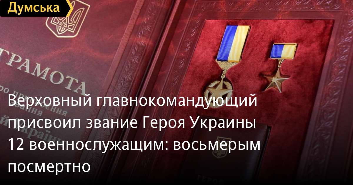 Президент Украины, Верховный главнокомандующий Вооруженными силами Украины Владимир Зеленский присвоил звание Героя Украины 12 украинским военным.