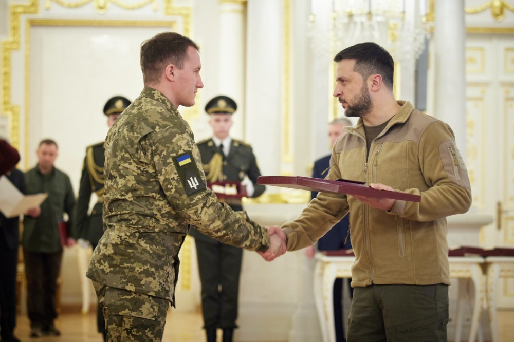 Президент Украины, Верховный главнокомандующий Вооруженными силами Украины Владимир Зеленский вручил ордена «Золотая Звезда» военнослужащим, которым присвоено звание Героя Украины, и членам семей военных, удостоенных этого звания посмертно.