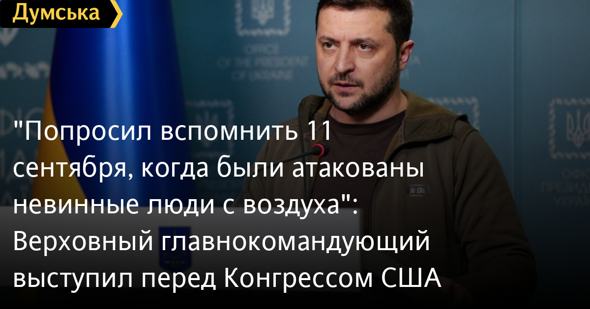 Владимир Зеленский попросил членов Конгресса вспомнить Перл-Харбор. Страшное утро 7 декабря 1941 года, когда их небо было черным от атаковавших самолетов. Попросил вспомнить 11 сентября — страшный день 2001 года, когда зло пыталось превратить американские города в поле боя, когда были атакованы невинные люди. С воздуха.