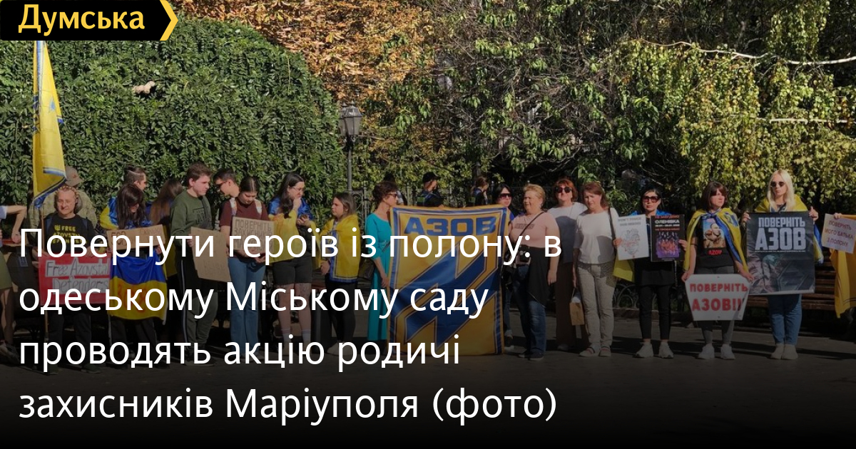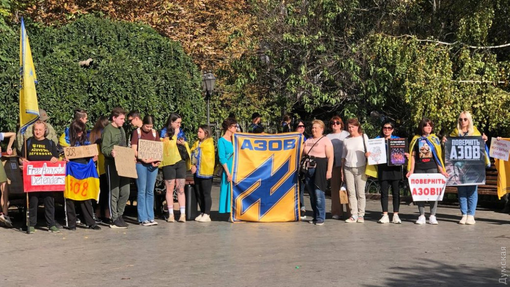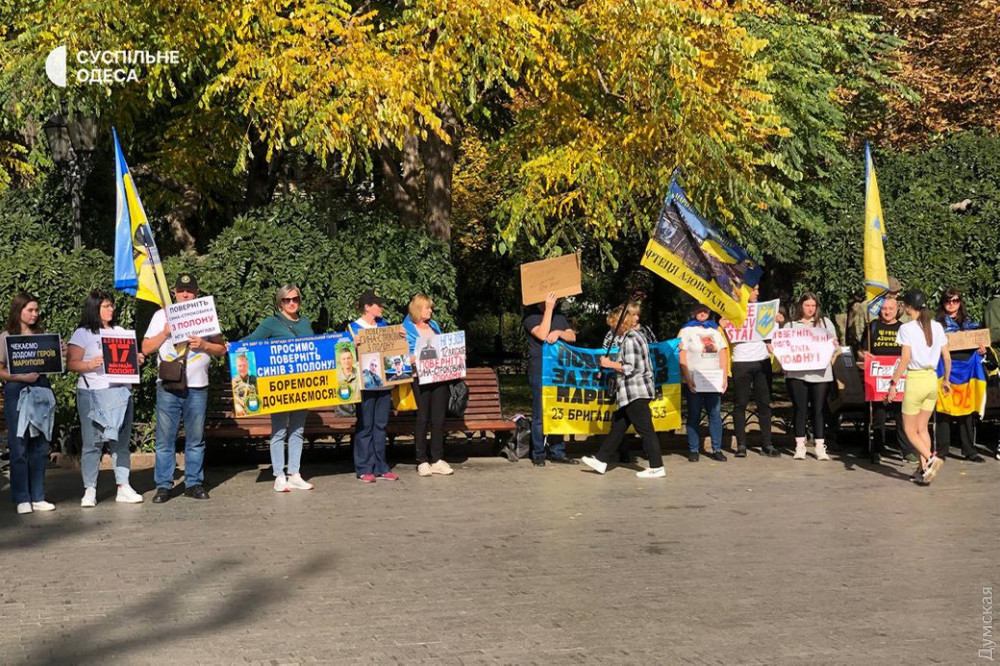 Родичі військовослужбовців полку «Азов», які потрапили в полон під час героїчної оборони Маріуполя, проводять акцію в одеському Міському саду.