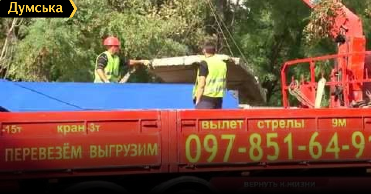 Взрывной волной повреждены несколько заведений, которые в зимний сезон были закрыты. По территории разбросаны обломки дрона, образовалась крупная воронка очевидцы подходят и осматривают место происшествия.