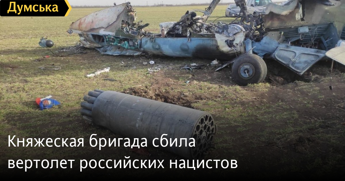 Воинам механизированной бригады имени князя Владимира Великого удалось сбить российский вертолет Ми-35. Об этом сообщила пресс-служба соединения. «Москальскую тварюку, которая несла смерть нашим городам и селам, сбили над Украиной воины Княжеской бригады. Минус одна рашистская пташка. Плюс один шаг к Победе», — отметили в бригаде. СМЕРТЬ РОССИЙСКИМ ОККУПАНТАМ! Заметили ошибку? Выделяйте слова с ошибкой и нажимайте control-enter |