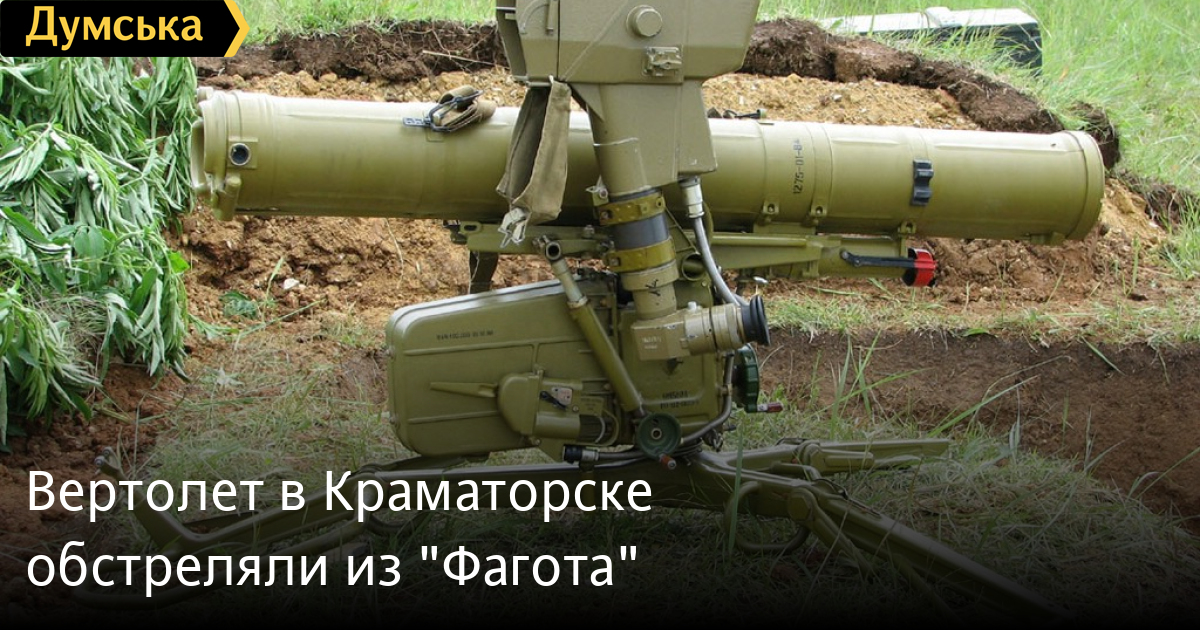 По данным же «Муниципальной газеты», вертолет был обстрелян из противотанкового управляемого ракетного комплекса «Фагот».По словам жителей одного из домов, выстрелов было несколько, и они производились с крыш самых последних (верхних) многоэтажек по улице Парковой. Сразу после выстрелов шесть человек в камуфляже, но без масок на лицах, вышли из подъезда, быстро сели в УАЗ и еще пару машин без номеров и уехали. УАЗ был именно тот, который недавно конфисковали захватчики в горотделе милиции, а потом перекрасили его и написали на нем «Народное ополчение Донбасса». В руках «зеленых человечков», помимо оружия, был заметен моток проводов, который, как выразились жильцы, был похож на маленькую «лебедку».По информации сайта, примечательно, что террористы расположились на крышах домов еще вчера вечером. Ночью бывший милицейский УАЗ стоял под одним из подъездов, и все жильцы прекрасно его видели, но и подумать не могли, что на нем приехали террористы. И только сегодня днем они открыли огонь с заранее подготовленных позиций. Скорее всего, ожидали, когда в вертолет сядет экипаж. Сейчас во дворах домов на ул. Парковой много людей в милицейской форме и гражданских.На месте резонансного происшествия была найдена проволока, с помощью которой было осуществлялось дистанционное управление ракетой. Также стало известно о двух членах экипажа вертолета, которые получили ранения средней степени тяжести.9К111 «Фагот» — советский переносной противотанковый ракетный комплекс, предназначен для борьбы с бронированными целями, разрушения укрытий и уничтожения огневых средств и точек противника, низко летящими вертолетами, на расстоянии до 2 км.