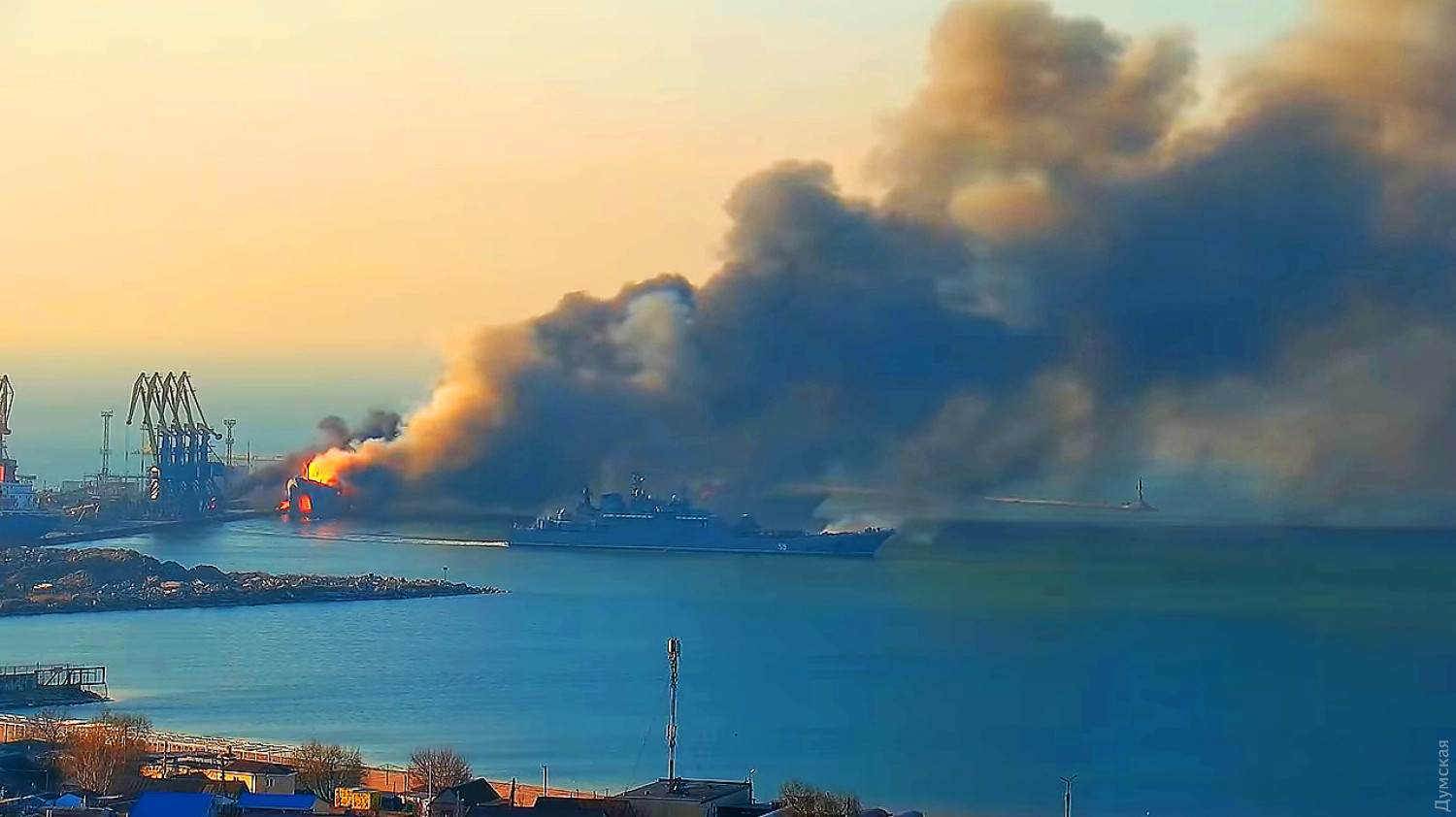 Першу велику перемогу над чорноморським флотом рф українські Сили оборони здобули рівно через місяць після того, як вибухнула велика війна. 24 березня 2022 року в порту тимчасово окупованого Бердянська українською ракетою було знищено великий десантний корабель проєкту 1171 «Саратов». Серйозних пошкоджень зазнали ще два російські «десантники» — проєкту 775.