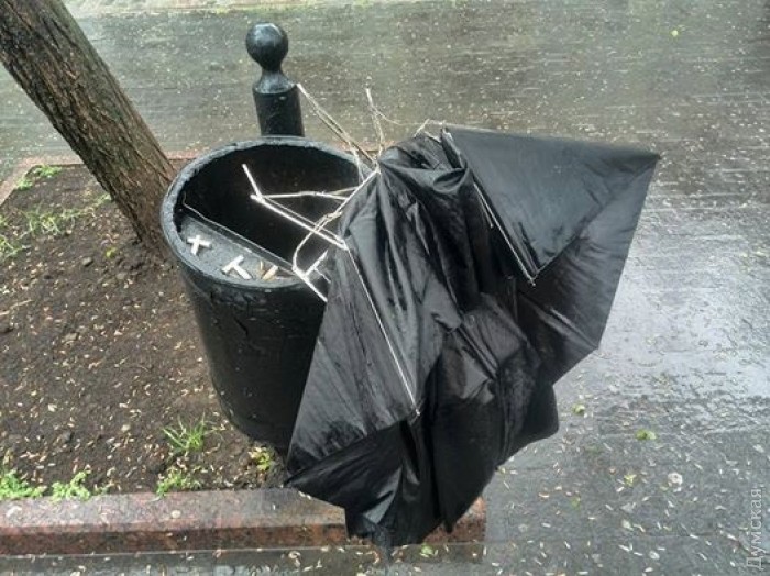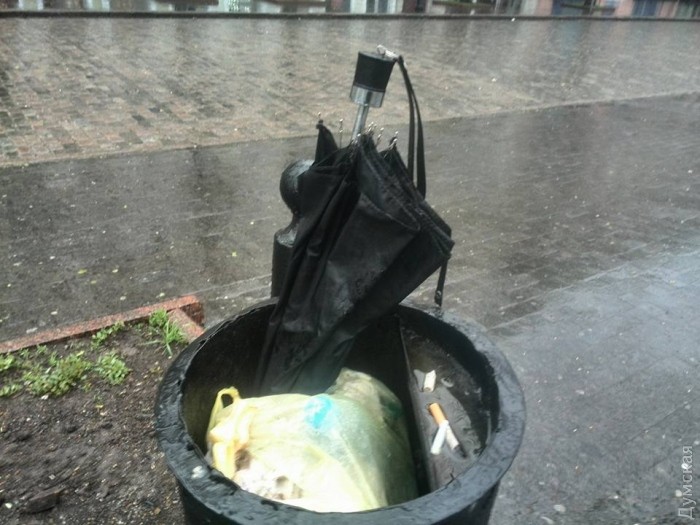 Вот как выглядят сегодня урны на Дерибасовской улице. В других районах города ветерок тоже изрядно набедокурил.