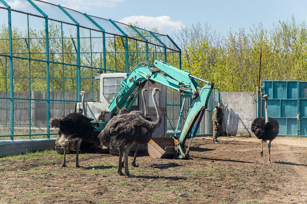 «Главное не показывать им страха, — рассказывает Яна Суровцева. – Если животное увидит, что вы не уверены, вам влетит, что от льва, что от страуса. Кстати, это очень агрессивные птицы, особенно самцы. Единственный способ уговорить их уйти на ночь в вольер — это сделать вид, что мы выше. Приходится, как в фильме, поднимать над головой доску».
