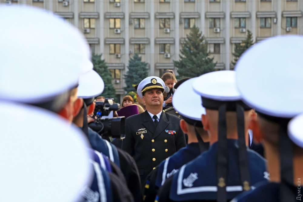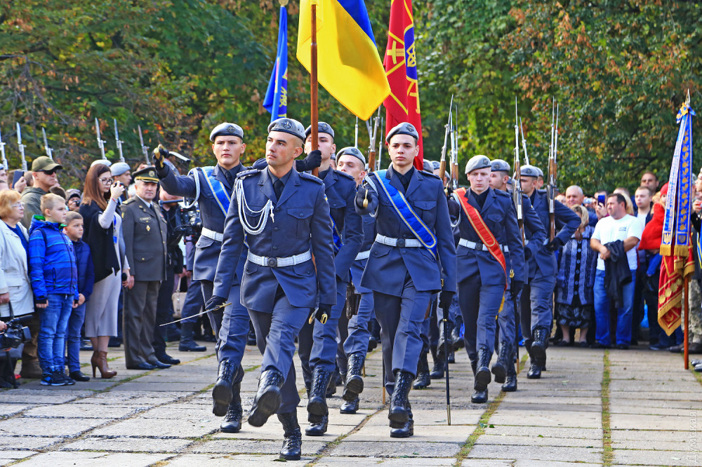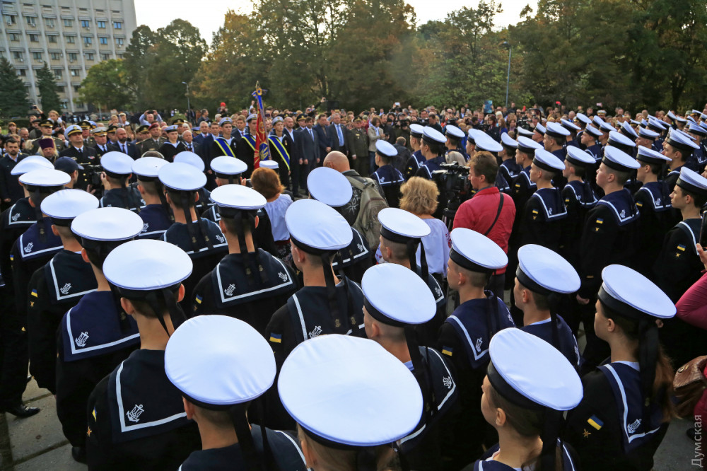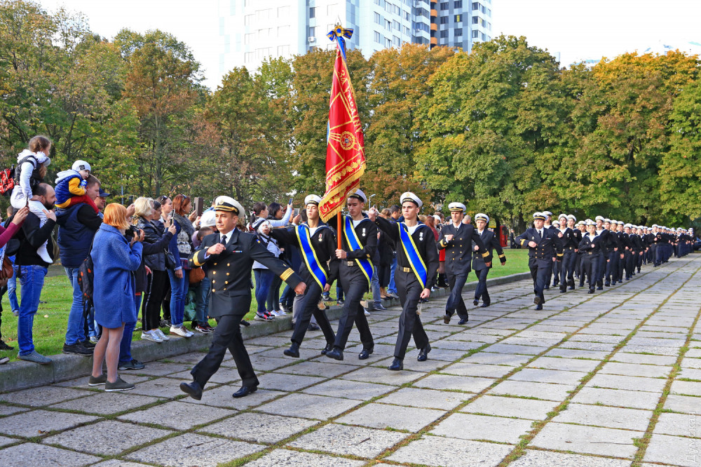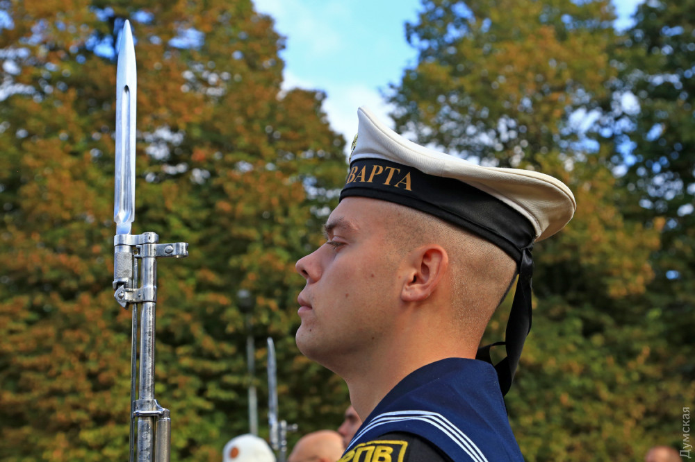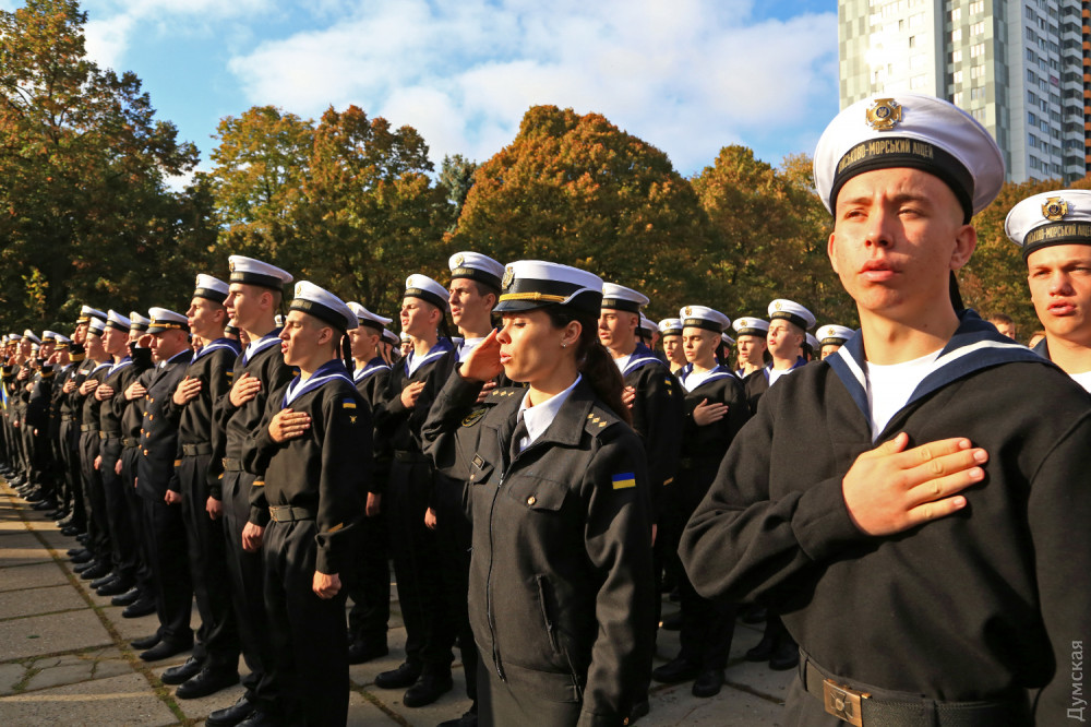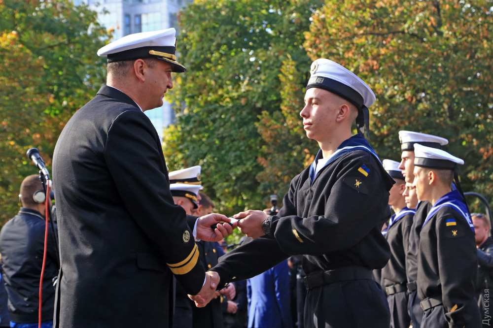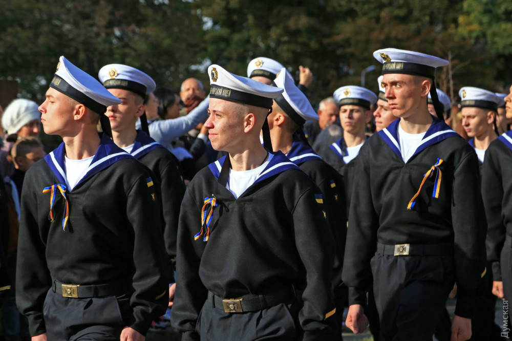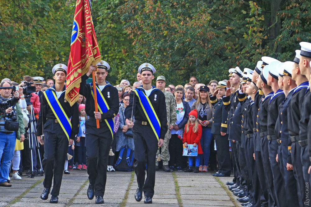 Далее был марш почетного караула, а затем воспитанники Военно-морского лицея принесли клятву на верность Украине. 88 молодых ребят поклялись «служить и защищать нашу святую землю от врага». Первый заместитель командующего ВМСУ вице-адмирал Алексей Неижпапа пожелал юным воинам успехов в учебе и ратном деле.
