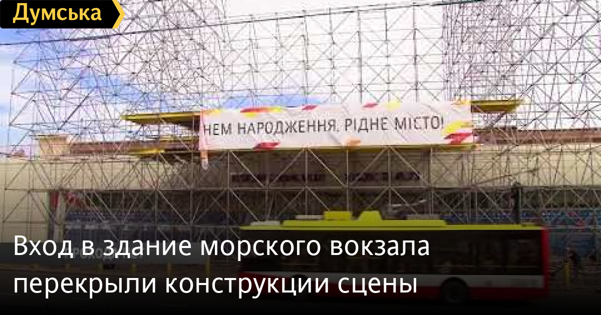Вход в здание морского вокзала перекрыли конструкции сцены. Люди вынуждены обходить сооружения по проезжей части. В мэрии обещают освободить проход в ближайшие дни.
