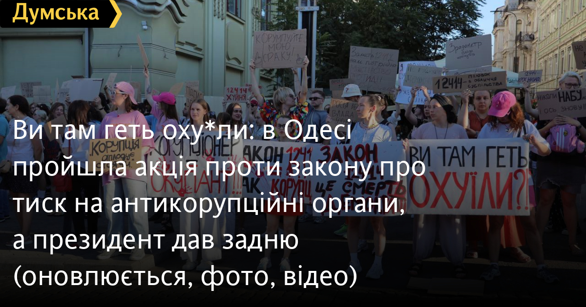 Ви там геть оху*ли: в Одесі пройшла акція проти закону про тиск на антикорупційні органи, а президент дав задню (оновлюється, фото, відео)