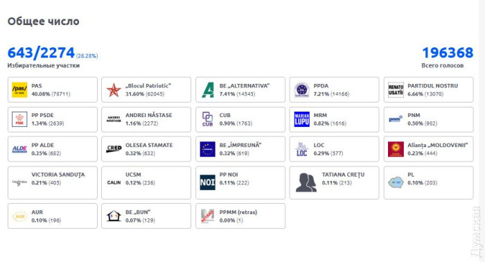 Одещина, видихай: на виборах у Молдові перемагають прозахідні силиЗавершились парламентські вибори у Молдові, результат яких визначить геополітичний курс країни: продовження євроінтеграції чи розворот у бік москви. Громадяни обирали 101 депутата терміном на чотири роки. Вже відомо, що усі голоси, віддані за проросійський блок «Велика Молдова», визнано недійсними. Це рішення стосується блоку, лідерка якого раніше відкрито висловлювала територіальні претензії, зокрема, зазіхала на Одещину.