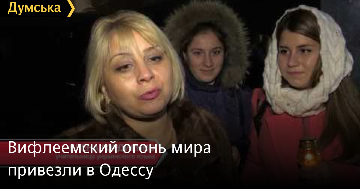 Вифлеемский огонь мира привезли в Одессу. Традиционно накануне рождественских праздников эту святыню доставляют в наш город, после чего распространяют по храмам и домам одесситов. Огонь раздавали на Соборной площади. Александр Тарасенко был одним из тех, кто встречал святыню. СМЕРТЬ РОССИЙСКИМ ОККУПАНТАМ! Заметили ошибку? Выделяйте слова с ошибкой и нажимайте control-enter Думская ТВ. Сюжеты: