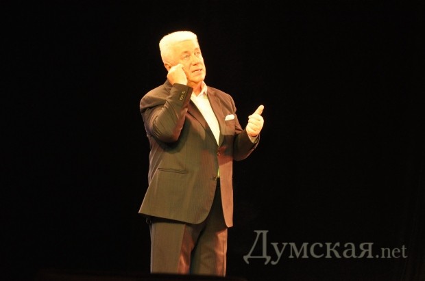 В Одессе Винокур стал Пьехой, рассказал, где Пугачева нашла Галкина и «одолжил» у Киркорова юбку (Фоторепортаж)Украинский театр. Сцена. Человек в костюме. Концерт Владимира Винокура в Одессе начался вполне традиционно: артист читал монологи, рассказывал анекдоты и, казалось, что это будет продолжаться вечно. Неожиданно он вспомнил о Филиппе Киркорове, на концерт к которому приходил накануне. А где Киркоров, там и Пугачева. «Она присмотрела себе мужа еще новорожденным, когда приходила в роддом проведать его маму – мы были все вместе: Кобзон, Лещенко, я, ну и она… Галкина они выбирали в роддоме уже вместе с Филиппом», — рассказывает одесситам Винокур. Потом артист вспомнил о Надежде Бабкиной, которая также ухватилась за «молодежный тренд» в личной жизни и вдруг на сцену неожиданно вышла сама артистка. Правда лишь пародийная. Были на сцене и «Алла Пугачева» с «Максимом Галкиным», и «Филипп Киркоров». За один вечер одесситы успели увидеть и послушать «Леонида Агутина», «Анжелику Варум», «Валерия Леонтьева», «Любовь Успенскую», «Стаса Михайлова, «Григория Лепса»… Кроме «метров» сцены молодые артисты играли и новых кумиров публики – Настю Каменских с Потапом, Тимати, Глюкозу, Жанну Фриске. Сам Владимир Винокур в этот вечер был и цыганом, и евреем, и украинцем, а еще – Пресняковым-младшим, Розенбаумом, Хворостовским, Крутым и даже Эдитой Пьехой. А в одном из номеров, пародируя Бориса Моисеева, Винокур вырядился… в юбку. Напомним, что накануне подобный номер, исполняя песню Ирины Билык, выкинул Филипп Киркоров. «Театр Пародий» Винокура существует уже 22 года. На одесские гастроли артисты привезли новую музыкальную программу «Смех без причины», которую не так давно представили в Москве. Уже сегодня это действо увидит Киев – концерт пройдет на сцене местного Дома офицеров. Автор фото: Юлия Городецкая