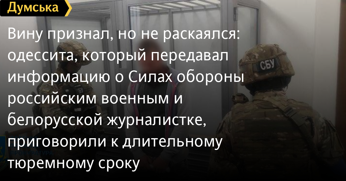 Провину визнав, але не розкаявся: одесита, який передавав інформацію про Сили оборони російським військовим і білоруській журналістці, засудили до тривалого тюремного терміну15 років позбавлення волі з кофіскацією майна — таке покарання призначив Приморський районний суд Одеси жителю міста Миколі Хмелю, який передавав росіянам дані про розміщення підрозділів Сил оборони. Як повідомляє кореспондент «Думської», судова колегія визнала одесита винним за частиною 2 ст. 111 і частиною першою ст. 263 КК України в державній зраді та незаконному поводженні з вогнепальною зброєю і боєприпасами. Чоловік розвідував в Одесі та області чисельність і маршрути переміщення особового складу, фортифікаційні споруди, їхнє маскування, місця зосередження бойової техніки та озброєння українських захисників. Крім того, він збирав у соцмережах і телеграм-каналах інформацію про волонтерів, які допомагають Силам оборони, одеситів, які займають і транслюють суспільству активну проукраїнську позицію. Також агент передавав російським кураторам, серед яких були чинні військовослужбовці рф, персональні дані відомих йому українських військових для подальшого їхнього знищення. Намагаючись максимально використати свій потенціал зі збору розвідувальної інформації, обвинувачений передавав білоруській журналістці Ксенії Лебедєвій дані про підготовку підрозділів Збройних сил України, Національної гвардії та Державної прикордонної служби України до оборони Одеської області. Передану інформацію, в подальшому, ворог використовував для нанесення ракетних ударів по регіону. Під час затримання у чоловіка виявлено та вилучено мобільний телефон, який використовувався у злочинній діяльності, та вогнепальну зброю з боєприпасами. У судовому засіданні Микола Хміль свою провину визнав у повному обсязі, але не розкаявся, залишившись вірним своїм переконанням. СМЕРТЬ РОСІЙСЬКИМ ОКУПАНТАМ! Помітили помилку? Виділяйте слова з помилкою та натискайте control-enter |