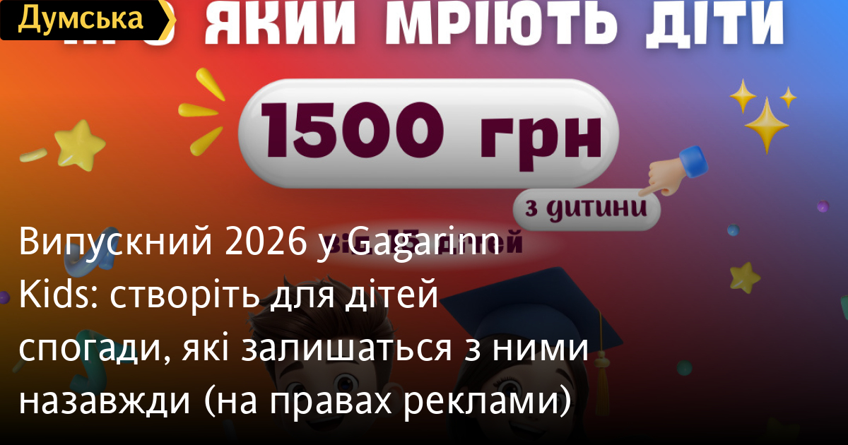Випускний 2026 у Gagarinn Kids: створіть для дітей спогади, які залишаться з ними назавжди (на правах реклами)Ваш малюк закінчує садок або початкову школу? Час влаштувати справжнє свято у Gagarinn Kids, після якого у дітей будуть сяяти очі! Яскрава атмосфера, святковий настрій та море щасливих емоцій — усе, щоб цей день став по-справжньому особливим! Вартість — 1500 грн. Бронювання вже відкрито! Найкращі дати розлітаються миттєво, тому не відкладайте підготовку на останній момент. Забронюйте щасливий день для своєї дитини вже сьогодні! СМЕРТЬ РОСІЙСЬКИМ ОКУПАНТАМ! Помітили помилку? Виділяйте слова з помилкою та натискайте control-enter |
