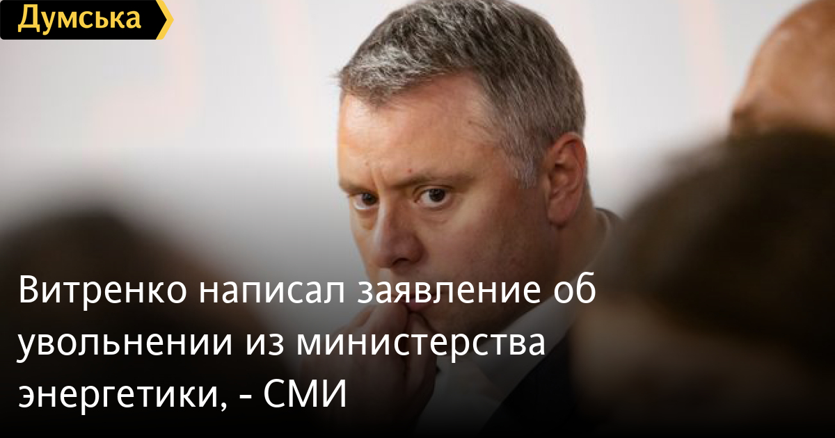 Исполняющий обязанности министра энергетики Юрий Витренко написал заявление на увольнение.