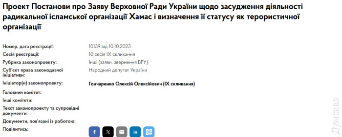 Визнати ХАМАС терористичною організацією: у Верховну Раду подали законопроєктЗаконопроєкт про визнання ХАМАС терористичною організацією подав нардеп Олексій Гончаренко. Відомості про документ вже з'явилися на сайті Верховної Ради України. «Також у документі закликаю Верховну Раду засудити діяльність Хамасу. Всі бачили, що Хамас робив з мирними мешканцями, вони вбивали жінок, дітей, немовлят. Це тероризм. Буквально годину тому Євросоюз визнав Хамас терористичною організацією. Ми повинні також зробити цей крок на зустріч Ізраїлю та підтримати його боротьбі проти терористів. Ми, як ніхто, розуміємо, що таке боротьба проти світового зла», — написав Гончаренко. СМЕРТЬ РОСІЙСЬКИМ ОКУПАНТАМ! Помітили помилку? Виділяйте слова з помилкою та натискайте control-enter |