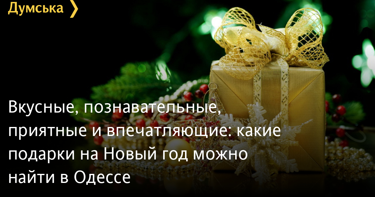 Вкусные, познавательные, приятные и впечатляющие: какие подарки на Новый год можно найти в ОдессеПринимать и дарить подарки всегда радостно, но процедура выбора зачастую оказывается задачей не из легких и загоняет в тупик даже искушенных потребителей. Судорожные предпраздничные поиски оригинальных презентов нередко заканчиваются приобретением очередных символических сувениров, которые не оставят никакого следа в памяти одариваемого и в лучшем случае займут место на полке. «Думская», выступая против дежурных подарков «для галочки», сделала подборку новогодних предложений от одесских компаний. Конечно, это – далеко не полный перечень предпраздничных товаров и услуг, но он, надеемся, напомнит о разнообразии вариантов или даст подсказку. СО ВКУСОМ Настоящий подарок должен быть со вкусом. Чтобы почувствовать вкус настоящего шоколада не нужно ездить в другие города и страны, в Одессе появилась собственная шоколадная мастерская – KISS Chocolaterie. KISS — это производство в центре Одессы, где каждый может зайти и посмотреть, как готовят шоколад ручной работы. Для своих любимых клиентов мастера сладостей приготовили шоколадные елки, шоколадные сани, новогодние детские наборы и много подарков для близких, друзей и клиентов. Адреса: Ришельевская, 5; «Сити-центр» (Маршала Жукова, 2), «Сады Победы «Космос». Телефон: +38 095 289 05 15 Новая всеукраинская сеть напитков и деликатесов «Країна вин» выполняет благородную миссию – знакомство с мировыми вкусами посредством наших рецепторов. К новогодним праздникам вы можете сформировать подарочные наборы любой наполненности и красоты, основываясь на вкусах и предпочтениях будущего обладателя. Это может быть как уникальное коллекционное вино, незаурядное игристое к праздничному столу или эксклюзивная бутылочка «серьезного» напитка для гурмана, так и профессиональные аксессуары для правильной церемонии потребления, шоколад и бакалея. Специально к праздникам тут создали оригинальное воспроизведение праздничного торта из настоек-дижестивов. Этот подарок, который отлично подходил для застолья, можно оформить со свечами или без, в любом количестве и исполнении. Адрес: ул. Садовая, 9 С УМОМ Новый год – время вдохновляющее устремиться к новым достижениям и инвестировать в свое развитие. Построить новые планы и поставить высокие цели поможет компания Study.ua, которая специально к Новому году подготовила для жителей Одессы приятные образовательные подарки. Скидка 50% на услуги Study.ua действует при регистрации на программы высшего или среднего образования, а также языковые курсы за границей до 31 декабря. Начало учебы: 2017 или 2018 год. Адрес: ул. Базарная, 5/3, оф. 1 Еще один отличный подарок для друзей, знакомых и возлюбленных — сертификат на посещение квест-комнат «Выход». Вы подарите своим близким впечатления, которые они запомнят на всю свою жизнь! Если раньше человек никогда не проходил подобный квест, то вы подарите ему новый способ развлечения, в противном случае — очередные 60 минут увлекательных приключений! В «Выходе» каждый квест – это новое кино, где работа сценаристов и декораторов полностью погружает участников в сюжет, делая их главными героями фильма. Можно приобрести подарочный сертификат на локациях «Выхода» или заказать доставку. С КРАСОТОЙ И УДОВОЛЬСТВИЕМ Сразу видно, что одесские бутики ко
