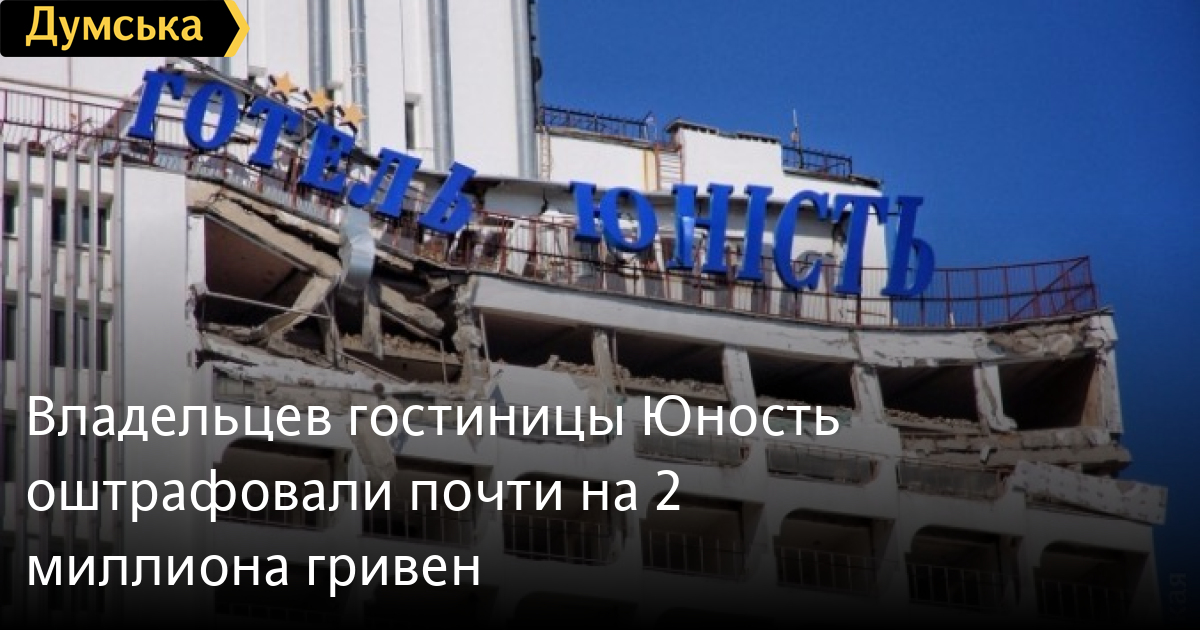 По его словам, владельцы «Юности» должны будут заплатить 1,7 миллиона гривен за различного рода нарушения. Кроме того, они были вынуждены допустить на объект комиссию, состоящую из специалистов областного ГАСКа, ГСЧС, строительной академии и так далее. Результатом ее работы стало выявление проблемных моментов в ходе реконструкции.