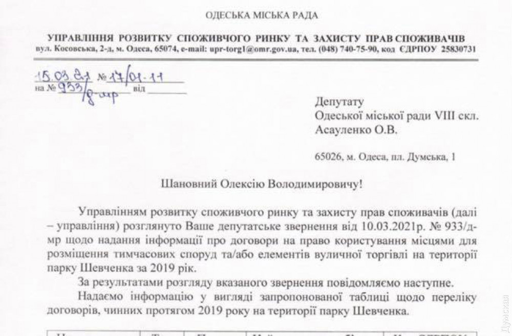 В официальном ответе мэрии на его запрос отмечается, что владельцы развлекательного комплекса ООО «Шоу», официально арендующие у города 3156 кв. метров, платят в муниципальный бюджет всего 31 тысячу гривен в месяц. Кроме того, у коммерсантов нет договоров с управлением торговли, а значит, кроме платы за аренду твердого покрытия, городу больше ничего не должны.