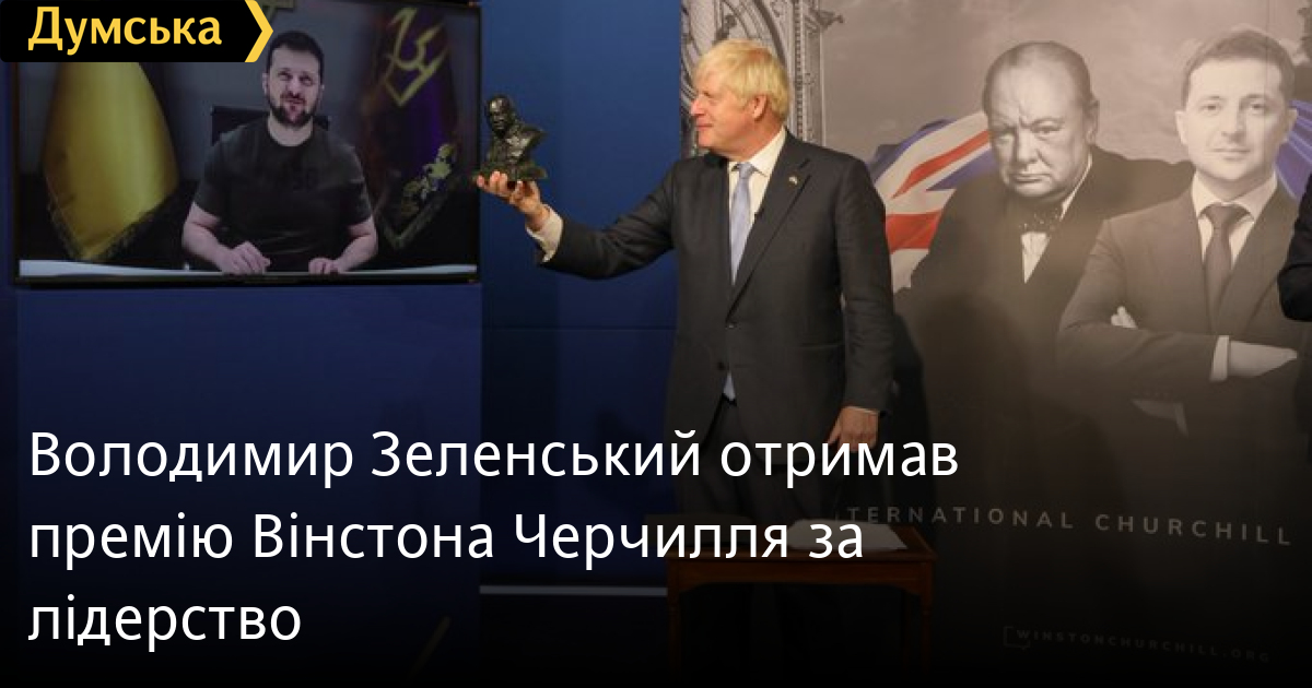 Президент України Володимир Зеленський отримав премію Вінстона Черчилля за лідерство. Нагороду вручив прем'єр-міністр Великої Британії Борис Джонсон.