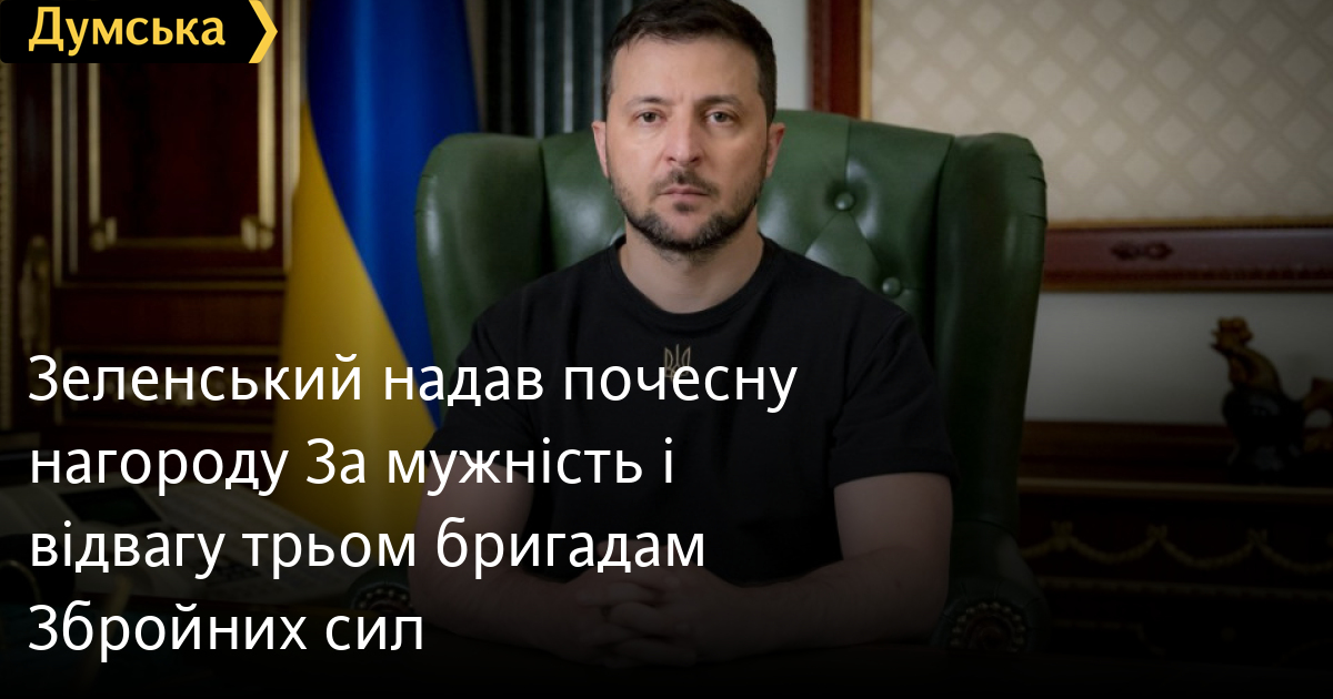 Президент України Володимир Зеленський надав почесну нагороду «За мужність і відвагу» трьом бригадам Сухопутних військ Збройних сил України.