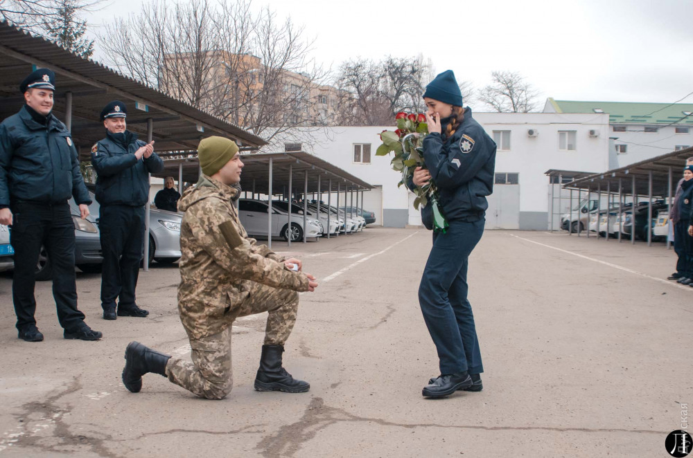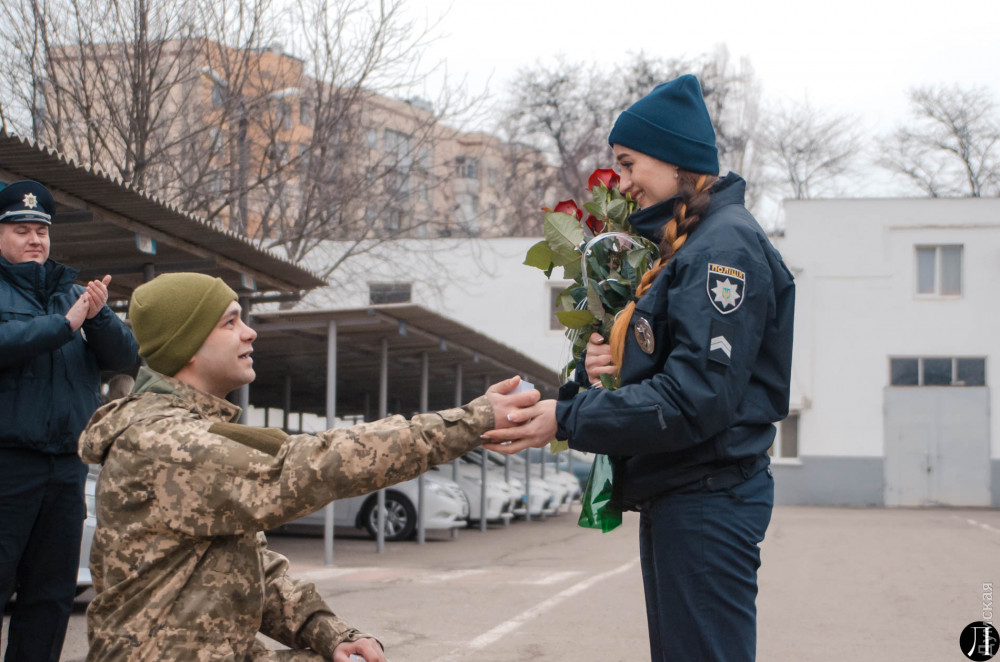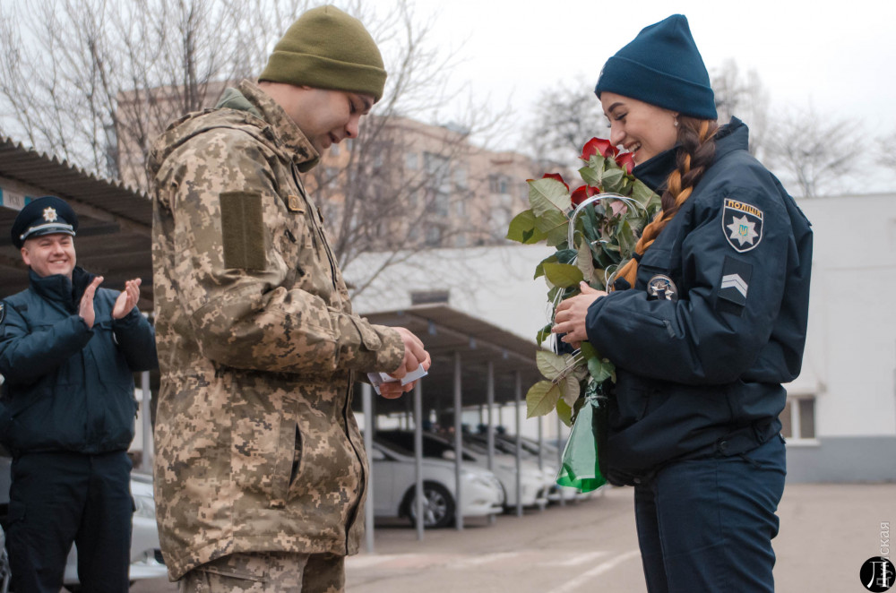 Романтическим вышло сегодняшнее утреннее построение сотрудников Управления патрульной полиции Одессы.