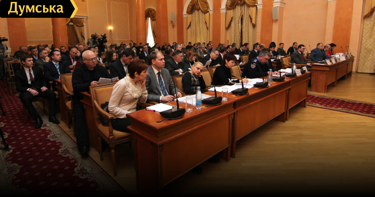 Любопытно, что если раньше государственный герб видел каждый входящий в зал, то отныне он бросается в глаза исключительно городскому голове и секретарю горсовета: трезубец повесили прямо перед их взором. Депутаты же сидят к гербу спиной.