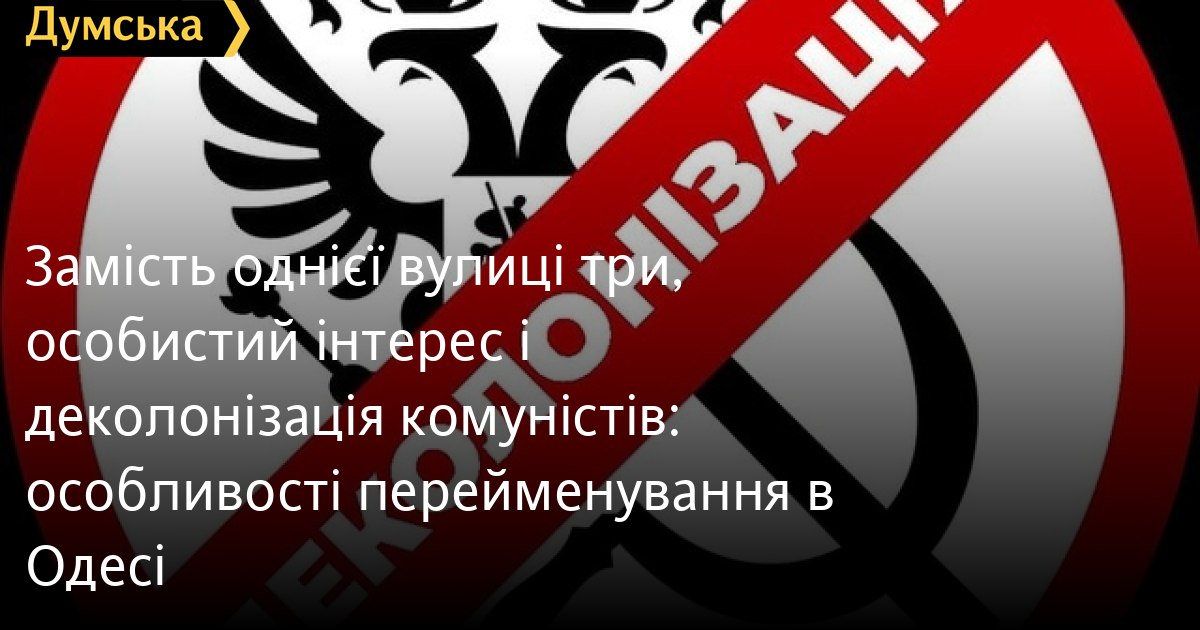 Замість однієї вулиці три, особистий інтерес і деколонізація комуністів: особливості перейменування в ОдесіДва топоніми в Одесі перейменували на честь рідних і знайомих сім'ї чиновниці обладміністрації, одну вулицю перетворили на три, а деколонізація комуністів і зовсім неможлива. Як передає кореспондент «Думської», Ніна Строката-Караванська і Галина Могильницька, чиї імена отримали вулиці Буніна і Герцена, — близькі заступниці обласного департаменту культури Ярослави Різникової, яка очолює робочу групу з перейменування. Педагогиня, поетеса і публіцистка Галина Могильницька (померла 2021 року) — її мати. А дисидентка Ніна Строката-Караванська — близький друг Олексія Різникова — батька чиновниці. До слова, 1972 року той не захотів давати свідчення на соратницю, відмовився від співпраці зі слідством і отримав п'ять із половиною років таборів. Ярослава Різникова прокоментувала «Думській» ситуацію, наголосивши, що не бачить у тому, що трапилося, нічого поганого, оскільки всі перераховані вище — заслужені люди. «Була пропозиція від однієї з громадських організацій, я як родич не мала нічого проти, але як член робочої групи за цю пропозицію не голосувала, — зазначила Ярослава Різникова. — Галина Могильницька — заслужений працівник освіти, двадцять п'ять років готувала вчителів, член Національної спілки письменників. Коли в інтернеті почали писати про нібито якийсь мій інтерес, то я подумала, що колись в Одесі буде й вулиця на честь ще одного мого родича, Олексія Різникова — дисидента, націоналіста, який сидів за свої переконання. Просто мені судилося народитися в такій родині». Не зовсім очевидно перейменування вулиці Паустовського. Ще кілька років тому вона проходила територією одразу трьох громад: власне, в Одесі, а також в Іллічанці (Красносільська громада) і Крижанівці (Фонтанська громада). Тепер же її поділили на три частини — одеська частина стала вулицею 28-ї бригади, іллічанська отримала ім'я загиблого героя Володимира Гусєва, а Крижанівська — відомої української поетеси Олени Теліги, яка, щоправда, не мала жодного стосунку до Одеси. Схожа ситуація склалася на південній околиці міста, де проспект Небесної сотні переходить у проспект Віталія Гуляєва (полеглий смертю хоробрих комбрига одеської 28-ї мехбригади). Але в цьому випадку перейменування в Одесі й Таїровській громаді відбувалися не одночасно і займалися цим абсолютно різні люди. Чи варто нагадувати, як бився мер Геннадій Труханов за Маршала Жукова, чиє ім'я носив проспект до декомунізації? Про це можна почитати тут, тут і тут. І ще тут трохи про ставлення Труханова до самого Жукова. Крім того, не зовсім зрозуміло, як у принципі вулиці Паустовського, Ільфа і Петрова, Бабеля, Жванецького і багато інших підпадають під закон про деколонізацію. Адже йдеться про діячів пізнішого часу. Нагадаємо, що наприкінці липня губернатор Олег Кіпер розпорядився перейменувати майже сотню топонімів в Одесі — варіанти представили члени робочої групи при департаменті культури обладміністрації, яку очолила Ярослава Різникова. Серед перейменованих опинилися дві такі знакові паралельні вулиці як Жуковського і Буніна. Перша отримала ім'я дисидента, мовознавця, публіциста Святослава Караванського, який провів тридцять років у таборах, а друга — його дружини Ніни Строкатої-Караванс