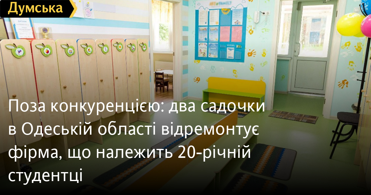 Поза конкуренцією: два садочки в Одеській області відремонтує фірма, що належить 20-річній студентціРоботи з ремонту двох дитячих садків у селі Саф'яни Одеської області проведе фірма, зареєстрована на 20-річну студентку Аміну Замфірову. Як випливає з даних системи Prozorro, управління освіти Саф'янівської сільради уклало дві угоди майже на 1,25 млн гривень. Перша — підготовка до опалювального сезону та ремонт санвузла для ясел-садка «Джерельце» в селі Кам'янка. На ці цілі передбачено понад 704,5 тисяч гривень. Закінчити ремонт необхідно буде до 16 вересня. Друга — ремонт підвалу під укриття в дошкільному закладі «Золотий ключик» у селі Саф'яни. Тут роботи оцінили в 540,5 тисяч гривень, а завершити їх мають до 31 серпня цього року. В обох випадках конкурс не проводився. Чиновники самі обрали підрядника, яким стало ФОП Замфірова Аміна Костянтинівна. Примітно, що зареєструвала свою справу юна підприємниця тільки 12 липня. Помітили помилку? Виділяйте слова з помилкою та натискайте control-enter |