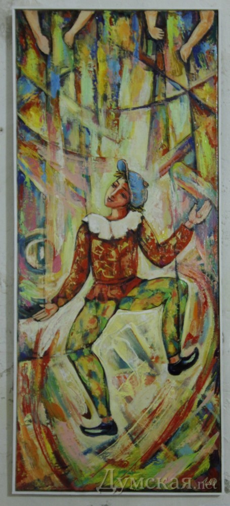 Сюжеты картин позитивны и бесхитростны: танцующие девушки, играющие музыканты, старички со скрипкой (верхом на ишаке или без оного), целующиеся влюбленные, сельские дворики. Столь же бесхитростна и живописная манера. Особенно «силен» Саша Торунян в анималистике: шок вызывают его одинаково круглоголовые коты и рыбы. В названиях автор тоже не изощряется, если на картине изображена ворона с орехом в клюве, то название может быть только «Ворона», а если кот (если это создание можно назвать котом) у окна, то соответственно — «Кот у окна». Согласно официальной биографии, Саша Аромович Торунян окончил Ереванское художественное училище. Но видимо, натура тянет его в сторону народного примитивизма. Впрочем, музейные работники, открывая выставку, сравнили Сашу Торуняна с классиком армянской живописи Мартиросом Сарьяном. «Я подумал: кто может быть ближе пути от зрителя к художнику, чем мастер с Соборки? – заявил директор художественного музея Виталий Абрамов. – Год назад «Желтые великаны» открылись как галерея современного искусства, но это же не значит, что здесь могут быть только концептуальные проекты. Художники с Соборки должны быть представлены на разных выставочных площадках города! Соборка, по сути, является зеркалом художественных вкусов и пристрастий широкого одесского потребителя искусства, этих художников следует изучать и выставлять. На Соборке надо обладать ярким художественным темпераментом и узнаваемым стилем. Там твою работу оценивают не критики в мягких, интеллигентных выражениях, там тебе все выскажут в лицо, сочно, не стесняясь…» В течение месяца можно посетить выставку в «Желтых великанах» и посмеяться вволю. Фото Владимира Андреева