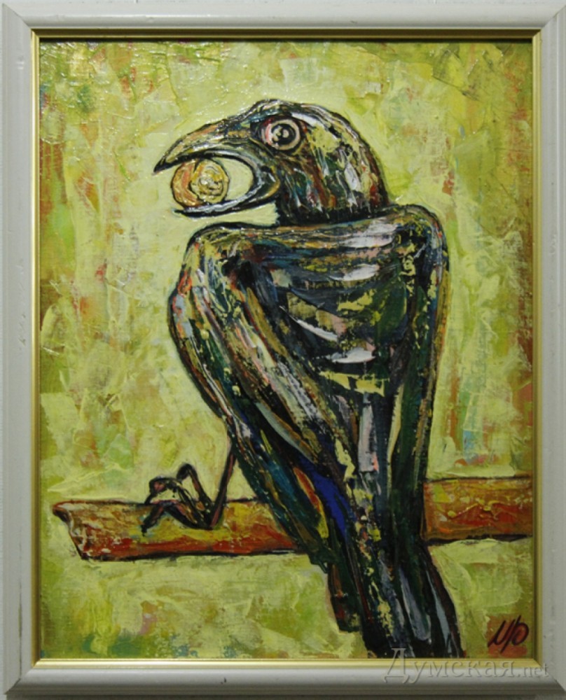 Шедеврально. Не совсем внезапно, а за деньги Не зря картины выставлены в подвале, куда мало, кто заходит. Фотку картины «Ворона и орех» вместо сыра, приклею на двери туалета.