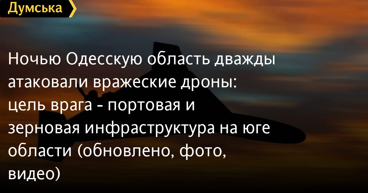 Ночью Одесскую область дважды атаковали вражеские дроны: цель врага — портовая и зерновая инфраструктура на юге области (обновлено, фото, видео)Российские нацисты дважды за ночь атаковали Одесскую область ударными беспилотниками. Основная цель — портовая и зерновая инфраструктура на юге области, сообщили в областной военной администрации. В результате вражеских попаданий по одному из портов Дуная пострадали складские помещения и зернохранилища. Возникли пожары. Спасатели оперативно потушили возгорание. Погибших и пострадавших нет. ОБНОВЛЕНО В 9:20. Ночью враг атаковал южные регионы несколькими волнами ударных беспилотников, сообщили в Силах обороны юга Украины. Сначала оккупанты ударили по Николаевщине, где силы противовоздушной обороны отработали на отлично — все дроны были уничтожены. Позже двумя мощными волнами атаковал юг Одесской области. ПВО уничтожила 13 дронов Shahed-136. Враг попал по территории одного из портов, разрушив ангары с зерном и сельскохозяйственную технику. СМЕРТЬ РОССИЙСКИМ ОККУПАНТАМ! Заметили ошибку? Выделяйте слова с ошибкой и нажимайте control-enter |