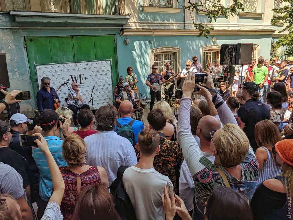 После вчерашнего концерта в одесском Оперном Борис Гребенщиков со своей группой «Аквариум» бесплатно спел во дворике Музея западного и восточного искусства.