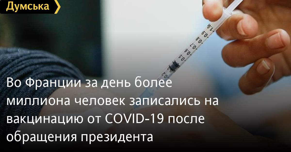 Во Франции за день более миллиона человек записались на вакцинацию от COVID-19 после обращения президентаВо Франции 1,3 млн человек записались на прививки против коронавируса менее чем за день, после того, как президент страны Эмануэль Макрон объявил обязательную вакцинацию. Об этом сообщает АВС News. Отмечается, что такое количество записавшихся — это рекорд с начала вакцинальной кампании, которая стартовала еще в декабре прошлого года. Большинство желающих сделать прививку — это люди младше 35 лет. На данный момент во Франции вакцинировали 41% населения. Летом интерес к прививкам снизился. Но из-за вспышек коронавируса в соседних странах и быстрого распространения штамма «Дельта» власти страны решили объявить обязательную вакцинацию для определенных категорий населения. Речь идет о персонале больниц и клиник, домов престарелых, учреждений для людей с инвалидностью и всех кто работает со стариками, даже дома. Макрон отметил, что с 15 сентября будут введены меры контроля и санкции. Например, медработники, которые не прошли вакцинацию, не смогут больше работать и не будут получать зарплату. СМЕРТЬ РОСІЙСЬКИМ ОКУПАНТАМ! Помітили помилку? Виділяйте слова з помилкою та натискайте control-enter Новини по цій темі: 4 березня 2023: "Вакцини-довгожителі", або Як щеплення проти COVID-19 перетворилися в Україні на небезпечний ритуал 27 січня 2023: МОЗ зобов`язали опублікувати договори на закупівлю вакцин проти COVID-19: апеляційний суд задовольнив позов журналіста "Думської" 11 січня 2023: За тиждень в Одесі зафіксовано 159 випадків ковіду 4 січня 2023: За тиждень в Одесі зареєстровано 113 випадків ковіду |