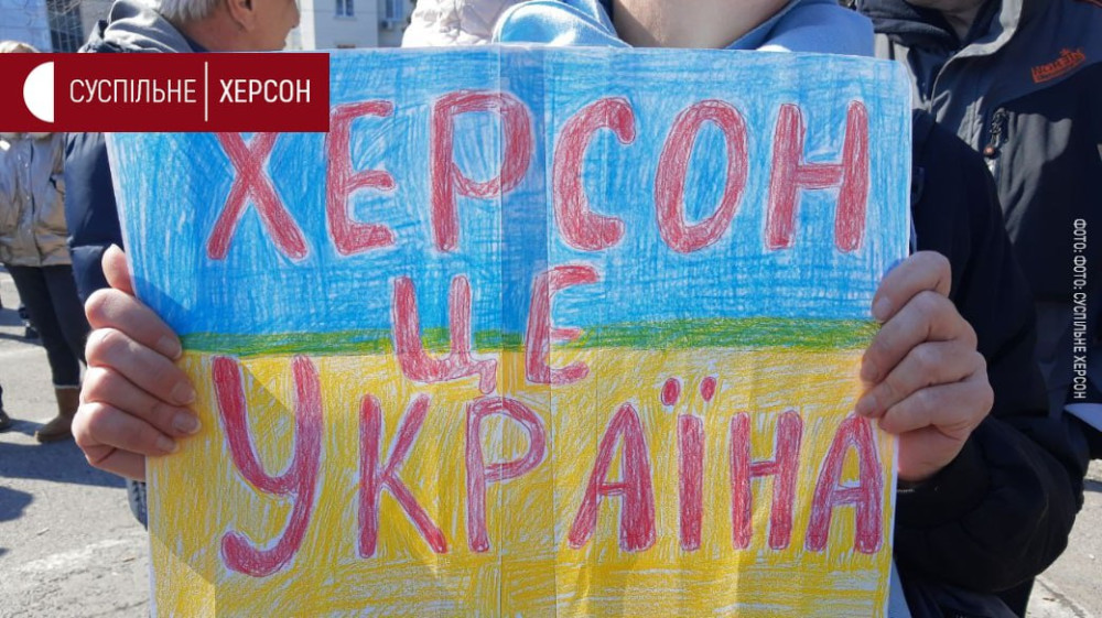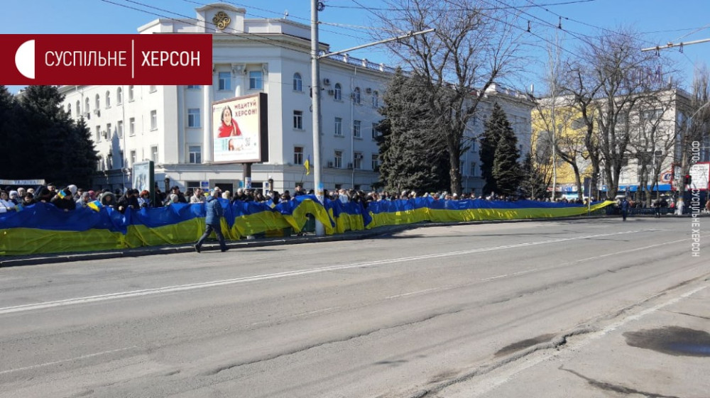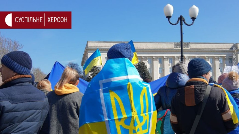 Многотысячный митинг против российской оккупации проходит во временно захваченном Херсоне на площади Свободы.