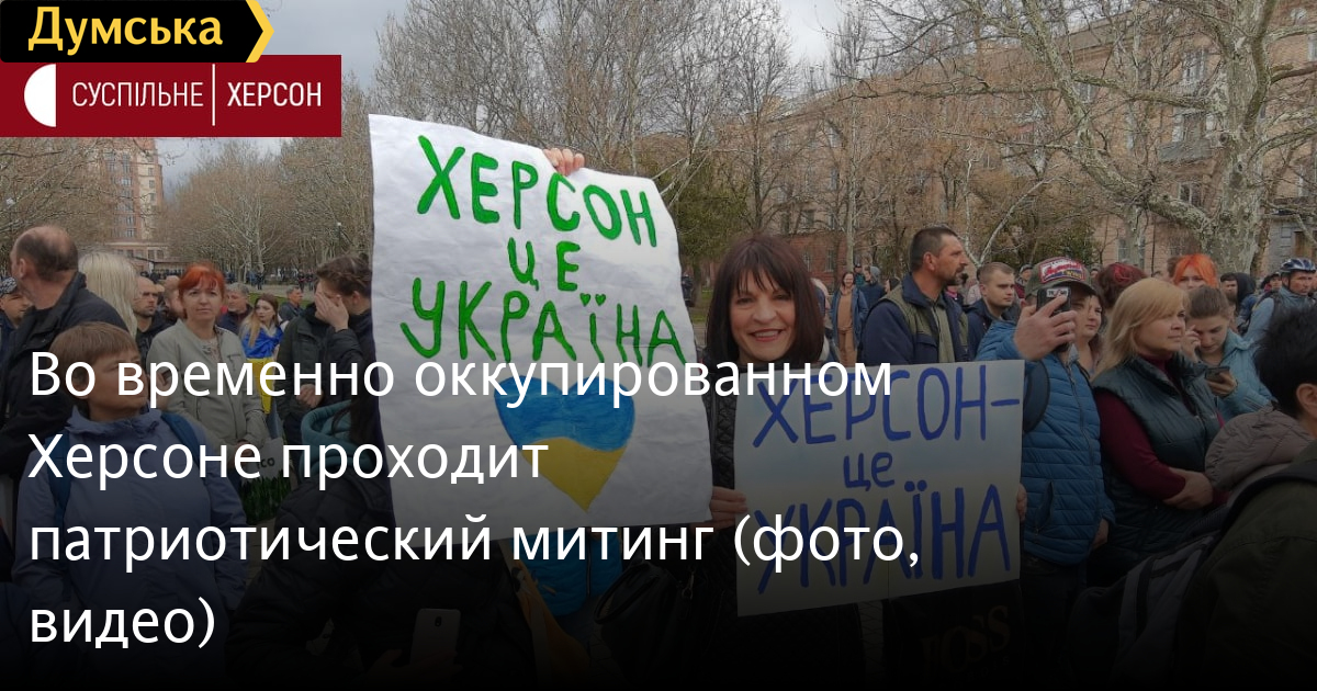 Местная редакция Суспільного сообщает, что люди вышли с государственными флагами и лозунгами: «Херсон — це Україна».