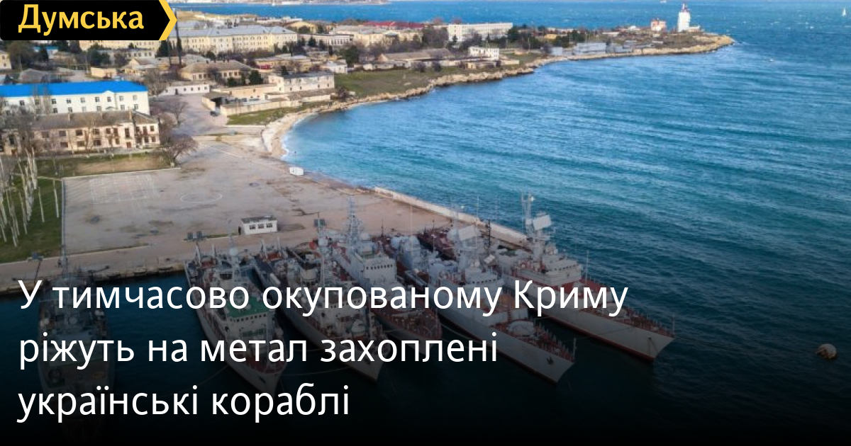 «Окупанти розпочали незаконну утилізацію захоплених у Севастополі та Донузлаві (озеро в західній частині Кримського півострова, — Ред.) кораблів ВМС ЗС України, які після 2014 року перебували в окупованому Криму. На спеціалізовану базу в Інкермані відправили катери «Придніпров'я» і «Херсон», морські тральщики «Чернігів» і «Черкаси», корвети «Луцьк» і «Хмельницький», — ідеться в повідомленні.