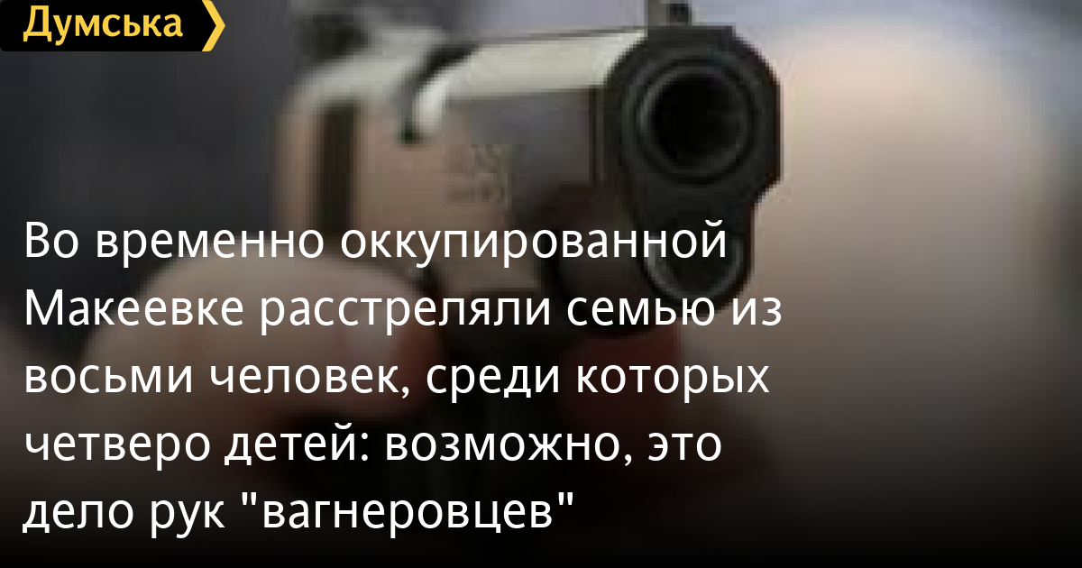 У тимчасово окупованій Макіївці розстріляли сім’ю з восьми осіб, серед яких четверо дітей: можливо, це справа рук “вагнерівців”Родину з восьми осіб, серед яких четверо дітей, розстріляли в тимчасово окупованій Макіївці Донецької області. Як повідомляє окупаційна адміністрація, тіла на території одного з домоволодінь знайшли о 21:15. Зі двору зник автомобіль Skoda. Наймолодшему з убитих — один рік. Також загинули діти семи та дев'яти років Так зване «МВС» окупантів відзвітувало, що «по гарячих слідах» затримало трьох підозрюваних. Всі вони мають судимості і нібито «зізналися, що скоїли злочин із корисливих мотивів, з метою викрадення автомобіля і цінного майна». В свою чергу радник мера Маріуполя Петро Андрющенко повідомив, що окупанти багато чого не договорюють і що масове вбивство може бути справою рук «вагнерівців». За його словами, вбито сім'ю ромів. Всі загиблі мають кульові поранення в голову з близької відстані. Самі макіївці повідомляли, що злочин скоїли військові. «Такі злочини можуть бути і надалі, оскільки росія набрала на фронт нелюдів і злочинців, неонацистів та інший людський мотлох», — вважає радник мера Маріуполя. СМЕРТЬ РОСІЙСЬКИМ ОКУПАНТАМ! Помітили помилку? Виділяйте слова з помилкою та натискайте control-enter |