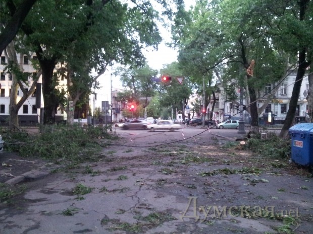 «В Одессе повалены 20 больших деревьев, которыми повреждены три легковых автомобиля, торговый киоск и травмированы четыре человека, которые госпитализированы в больницы города», — говорится в сообщении.