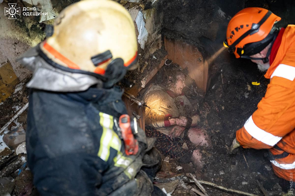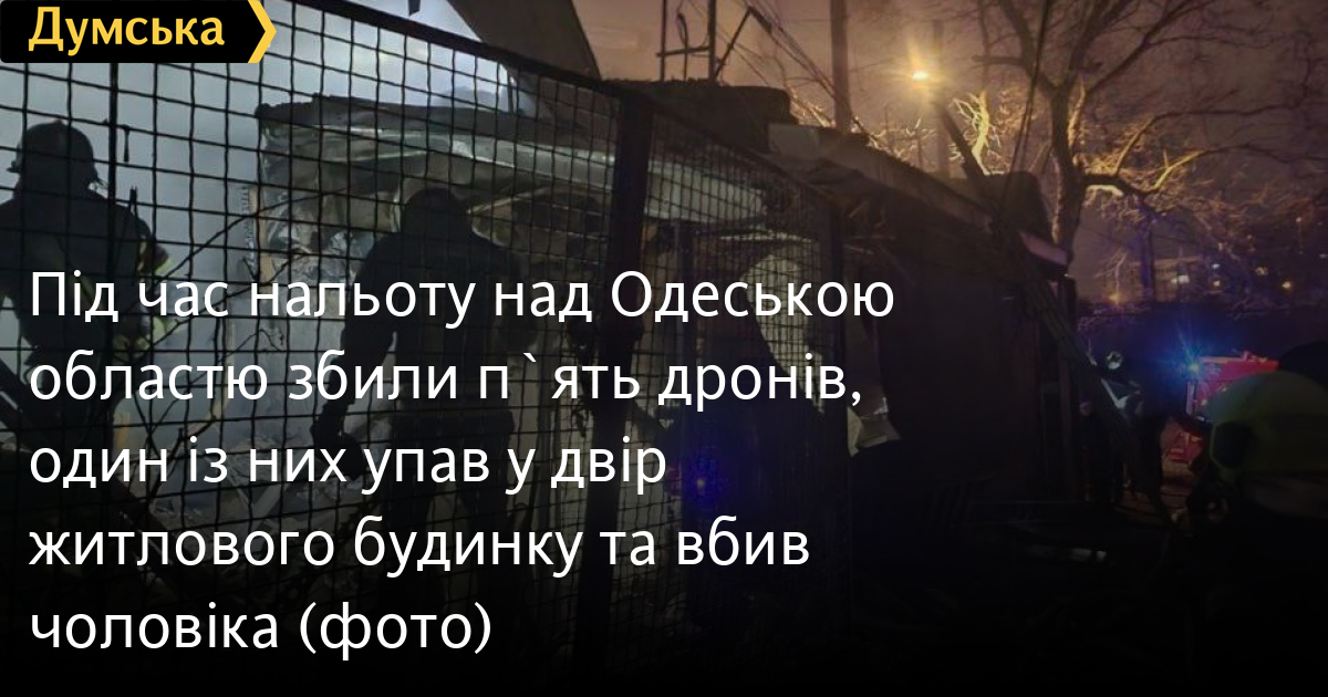 Сили оборони півдня України повідомили, що один із підбитих дронів впав у двір житлового будинку в Одесі. Одна із квартир була повністю знищена. Загинув чоловік, який був у ній, його дружина опинилася під завалами, її витягли і госпіталізували у важкому стані.