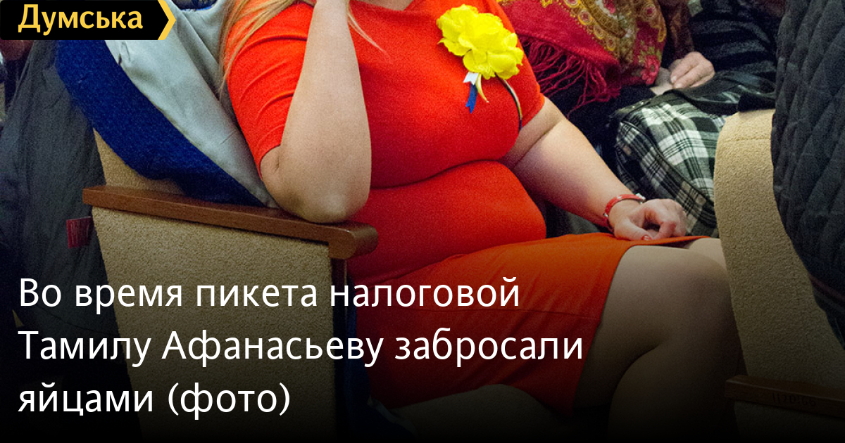 Протестующие, собравшиеся возле здания налоговой администрации на Семинарской улице, забросали яйцами и мукой общественницу Тамилу Афанасьеву.