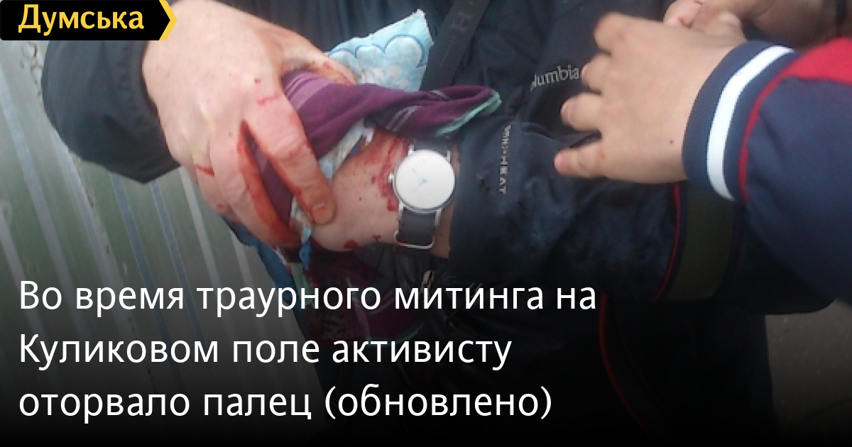 Не обошлось без происшествий. Так, в руках одного из участников акции взорвалась траурная лампадка и оторвала ему палец.